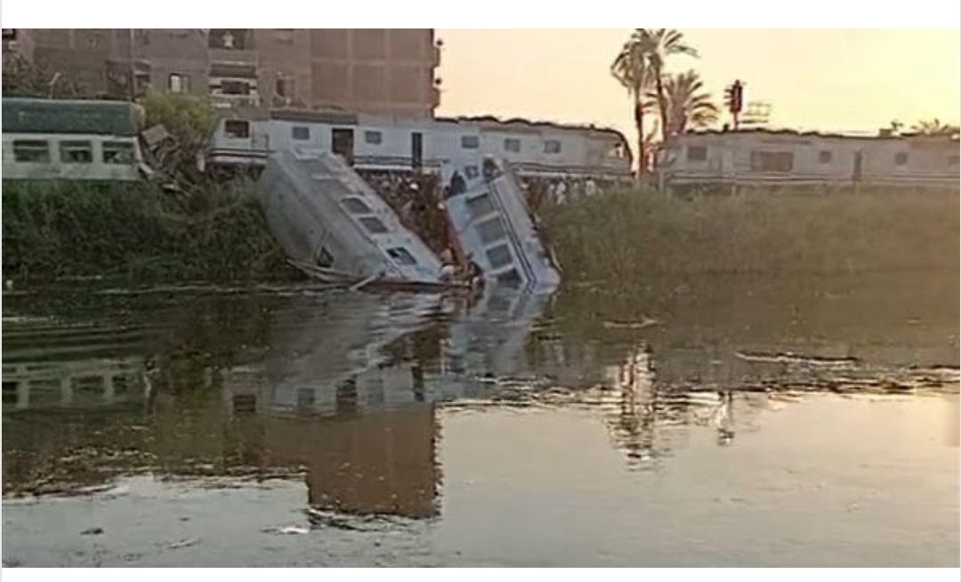 اصط,,م منذ قليل، قطاران على خط الصعيد، عند منطقة ماقوسة في محافظة المنيا، وانقلبت عربات في ترعة الإبراهيمية.